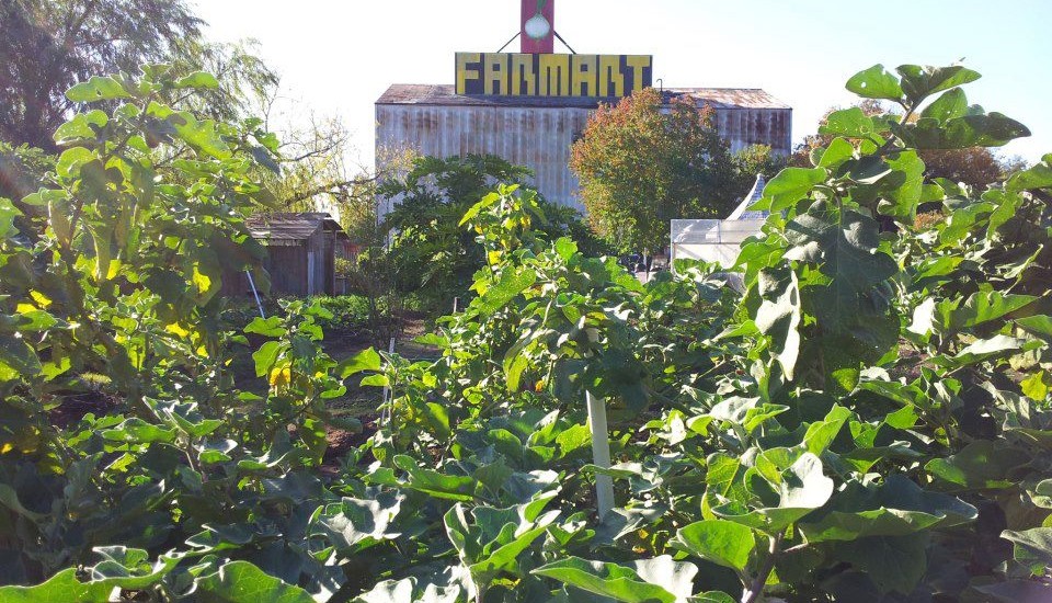 Joe: For the last several years, Ja’nee Barton has headed up Farmfest. It is held the first Saturday in November. In the spring, we have a skillshare. As a shared space, many activist communities including Sedition Bookstore have come out to the farm. They had dinners, showed movies and sold books. The Occupy group came out and helped plant and weed in exchange for food. Vegan groups have participated with raw food demonstrations. Transient Antenna, a seven-person “mobile living experiment,” did the murals of “Farmart” and the onion, back when the farm first opened. David Reed has been working on a cob oven. Folks built a stage, a yoga deck, a demonstration micro home, signs and many other art projects. Houston Free Thinkers and 5th Ward Church of Christ both have garden projects at the farm.