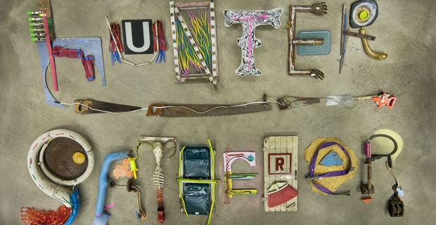 While Renner’s work solely used found materials, Larsen uses them more as a jumping off point, “It’s not always important for me to highlight the fact that certain materials are ‘reclaimed’ or ‘salvaged.’ I think those terms can pigeonhole the concept of a piece.“ Still, Larsen feels more that he is “constantly hunting for things to gather: colors, shapes, situations.” As he gathers these materials and concepts, they fill his studio, interacting with and reacting to each other until each piece finds its place. While he doesn’t want to focus solely on the idea of using found materials, using them as a jumping off point keeps his work focused, giving his pieces boundaries that he can comfortably work within.