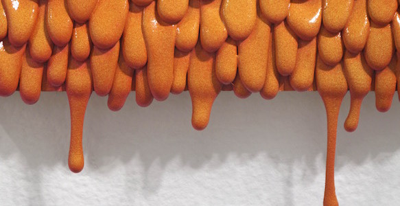 John Medina: When I was younger, my mother really got into crafting. It wasn’t uncommon to come home from school and find a hot glue gun sitting on the dining room table. If you leave a glue gun unattended for a while it will eventually start to drip. This happened all the time in our house. My mother would get busy doing other things and the glue gun would drip onto the table. Fascinated by the clear, jewel-like droplets I would reach out to touch them, only to have my hand slapped away by my mother who warned that I would burn myself. I really enjoy the fact that people are so attracted to the textures of my paintings. I like to watch as they reach out to touch the surfaces only to retract their hands at the last minute as if there is some sort of invisible force field around the panels. The viewer is experiencing my own desire to touch something that I wasn’t supposed to. Its a sort of primitive urge that can be overwhelming at times. In my case, I gave in to my urges and eventually burned myself with hot glue. Viewers may find that touching art may have its own set of consequences.