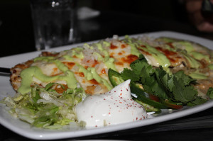 In the other corner, my husband had the ‘Whole Enchilada’ with chicken instead of beef brisket, which is ridiculous, I think, but the damn thing was in overdrive with about a pound of cheese, red mole sauce and a side of sour cream, cilantro and fresh jalapenos. My fork gained ten pounds just from touching it.