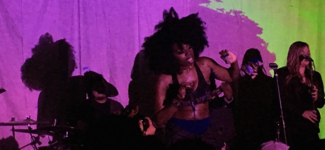 Finally it’s that time, Lyric Michelle is about to perform and the crowd is all a-fire, eagerly awaiting her entrance on stage. She walks out on stage, projected on the wall behind her was the name of the album, Miss Direction with the D shown backwards.. I laughed a little. Immediately, by her style, I could tell she was a big fan of Erykah Badu and Lauryn Hill — great artist to be influenced by. So I was expecting to hear powerful lyrics, about women’s empowerment, fuck the man, black power all that good stuff. She is very poetic, intelligent and I can definitely see great potential. It’s pretty apparent that she’s still in her larval stage as an performer though. The first few songs started off a little rough you could tell she was nervous, but progressively throughout the night you could see her confidence building. A lot of her songs are very intimate, I can feel she puts a lot of her personal experiences and emotions in her words. Halfway through her set it was obvious she was getting tired, but I imagine it’s not easy to spit fire all the time. One thing she’s really good at is throwing words at you so quickly it’ll make you go “What did she just say?” It was like machine gun fire, impressive, but it was really hard to comprehend sometimes. There is one line that irked me a little “ I’m a Good Girl, Fuck a Bad Bitch”. Why does that bother me so much? I don’t know maybe it’s because of how provocatively she dresses? Maybe it’s because she sets up a false dichotomy — as if a woman can be only one or the other. She looks like a pretty Bad Bitch to me but in a good way…