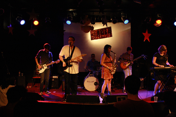 First up was Denton’s Fishboy. Fun, quirky indie pop with a vocalist who sings with this nerdy nasally voice. The thing that stunned me is how, despite the fun upbeat songs, nobody was dancing. That’s OK, the keyboardist made up for everyones chill. Someone called them, in a complimentary tone, Joe Mathlete Junior. I think that is a pretty apt comparison given the songs about robots and goofy stuff like that, plus the bassist liked like the son of Alan Moore and Jaron Lanier which is a pretty awesome look. The band’s set, being billed at Fishboy VS. Kanye West, also had the best running joke of the evening: