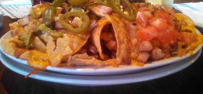 So, we sit down at the only table available; the server comes over and we order beers. After a few short minutes the waitress comes back with our drinks and informs us that there is about an hour left till the buffet is over — this is when someone died and stood at the gates of Heaven waiting for St. Peter to find his key — but one of my friends ignores the buffet comment and goes ahead and orders nachos. We all look at him weird and make fun of him because he passed up a free buffet in order to get a plate that is usually very hit or miss, however, I am curious to see what happens. If you’re anything like me, then you have only one weakness, and that weakness is nachos.