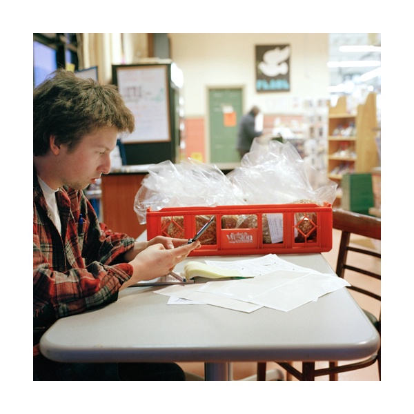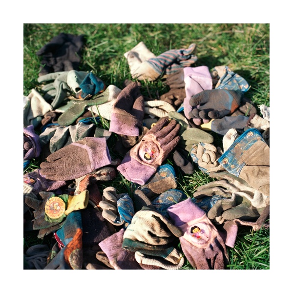 Christine Boggs’s series showing co-ops in the Rochester, NY area includes an image of a bakery owner (or manager) crunching numbers during early morning or late night hours, trying to make ends meet. Another photo from the same series shows a pile of discarded gardening gloves, some bearing images of Dora the Explorer and calling migrant farm workers — and their own and their children’s relationship to Dora — to the viewer’s mind.