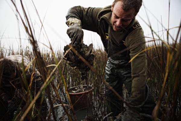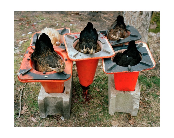 David Welch’s photo of chickens being drained of their lifeblood in inverted traffic cones come from a world where meat glue is only a nightmare, not a reality, and Jody Horton’s cookbook photos of oyster gathering remind the viewer that the oysters served on ice with a side of horseradish and hot sauce in their Instagram “feed” come from men, knee deep in marshes with sweat stinging their eyes.