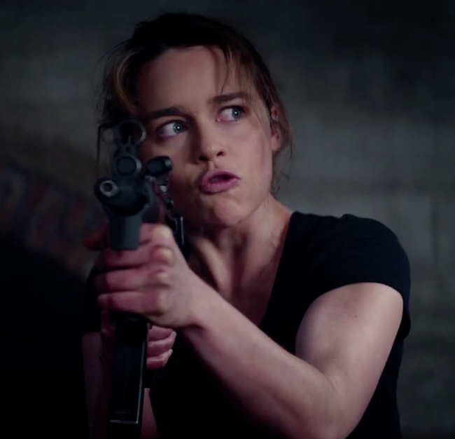 The best part of T2: JD occurs at the end of the second act. We witness a nuclear bomb going off and before the shock wave can reverberate people miles away (including Linda Hamilton) are burned to a crisp leaving only charred bones. This is how Terminator Genisys starts, sans the burnt humans. Having just defeated Skynet, John Connors (a scarred Jason Clarke, no relation to Emilia) sends Kyle Reese (Jai Courtney) back to 1984 to prevent; well you know where this is going. Emilia Clarke brings freshness to femme action hero Sarah Connor, obviously more petite than Charlize Theron’s Furiosa, yet still packing a half-pipe punch. (By the way, Mad Max: Fury Road is still the best action studio film so far this year.) Clarke, like director Alan Taylor is a veteran of Game of Thrones.