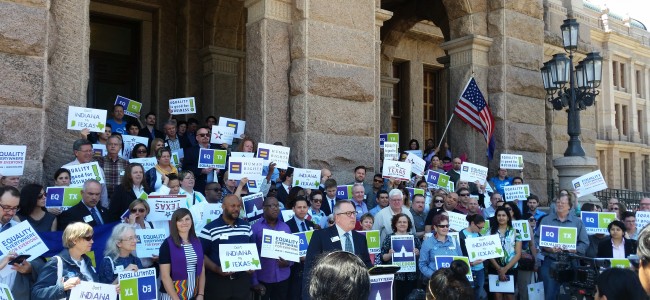 The Freedom Advocacy Day was organized by Equality Texas, the Texas Freedom Network, and the Human Rights Campaign. A rally was held before the legislative visits, where activists held signs saying, “Don’t Indiana my Texas,” and “Equality is Good for Business.”