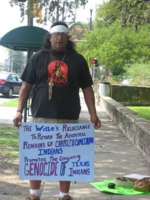 If you’d like to learn more or get involved, please visit, like, and share our website and Facebook page. Please also write to the Witte Museum in San Antonio to return our Ancestors’ bodies and other remains for respectful re-interment, or send us artifacts, articles, stories, references, books, photos/illustrations, internet links that pertain to our history (including references to Coahuiltecan, Lipan Apache, Comanche) and groups of our People such as the Tejon, Pinto, Garza, Venado, Tortuga, Borrado and any other “tribe” that is described as living in and around the territory between the Canadian River in the Texas Panhandle south to the San Fernando River in Tampico, Mexico and from El Paso east to Matagorda Bay.
