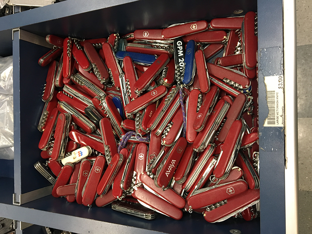 So what kind of stuff does Fierro and her crew of junk-sifting employees sell at their state-run Goodwill facility? Basically anything else — especially if it resembles a knife. As you can see below, the State Surplus Store is a verifiable wonderland of cheap-ass horseshit you can buy your dad for Father’s Day, all confiscated at airport security checkpoints around Texas.