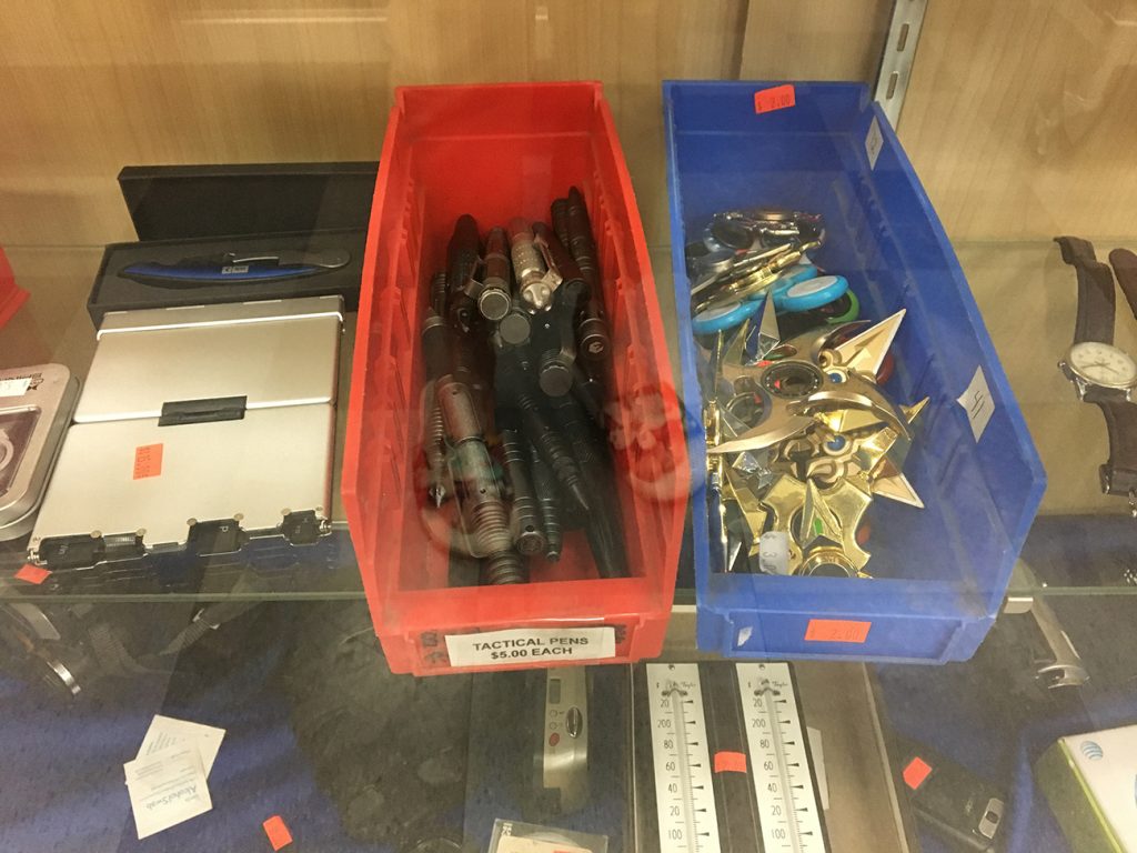 All the brass knuckles with spikes on them go in there. We don’t sell that kind of stuff.”