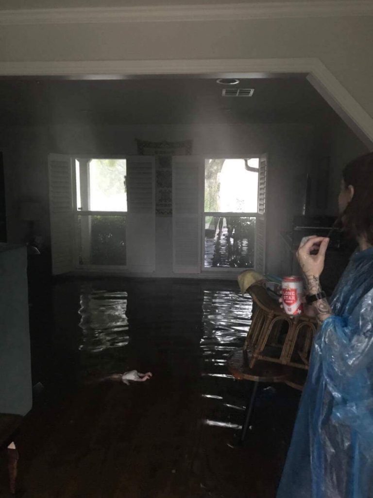 To add insult to injury, when we attempted to turn on our cars both of them started smoking and spitting out water. (We were able to later get one of the vehicles running.) We then aimlessly began pounding Lone Stars and packing what was left of our clothes into trash bags to protect them from the mold, not knowing our end destination or how long it would be before we saw these things again.